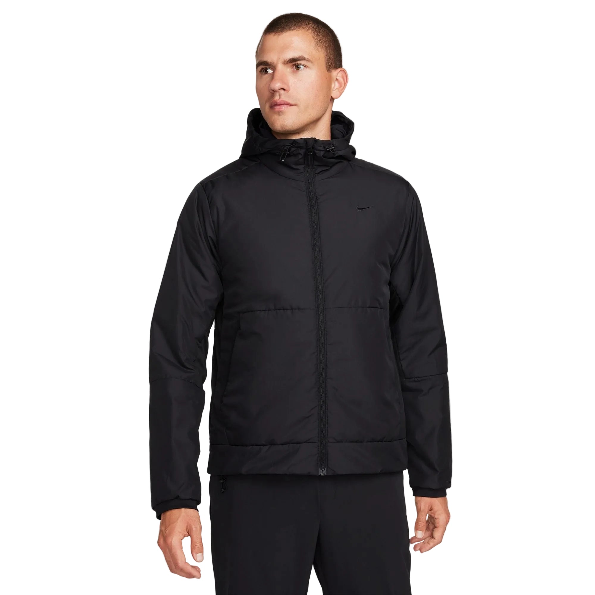 Built for running, training and yoga, our Unlimited collection helps keep you moving throughout the year, thanks to its premium materials and innovative features. For this Therma-FIT jacket, a mid-weight woven fabric is paired with stretchy knit in the side panel and insulation to help your body stay warm. The shell also repels water so you can stay active in wet conditions.