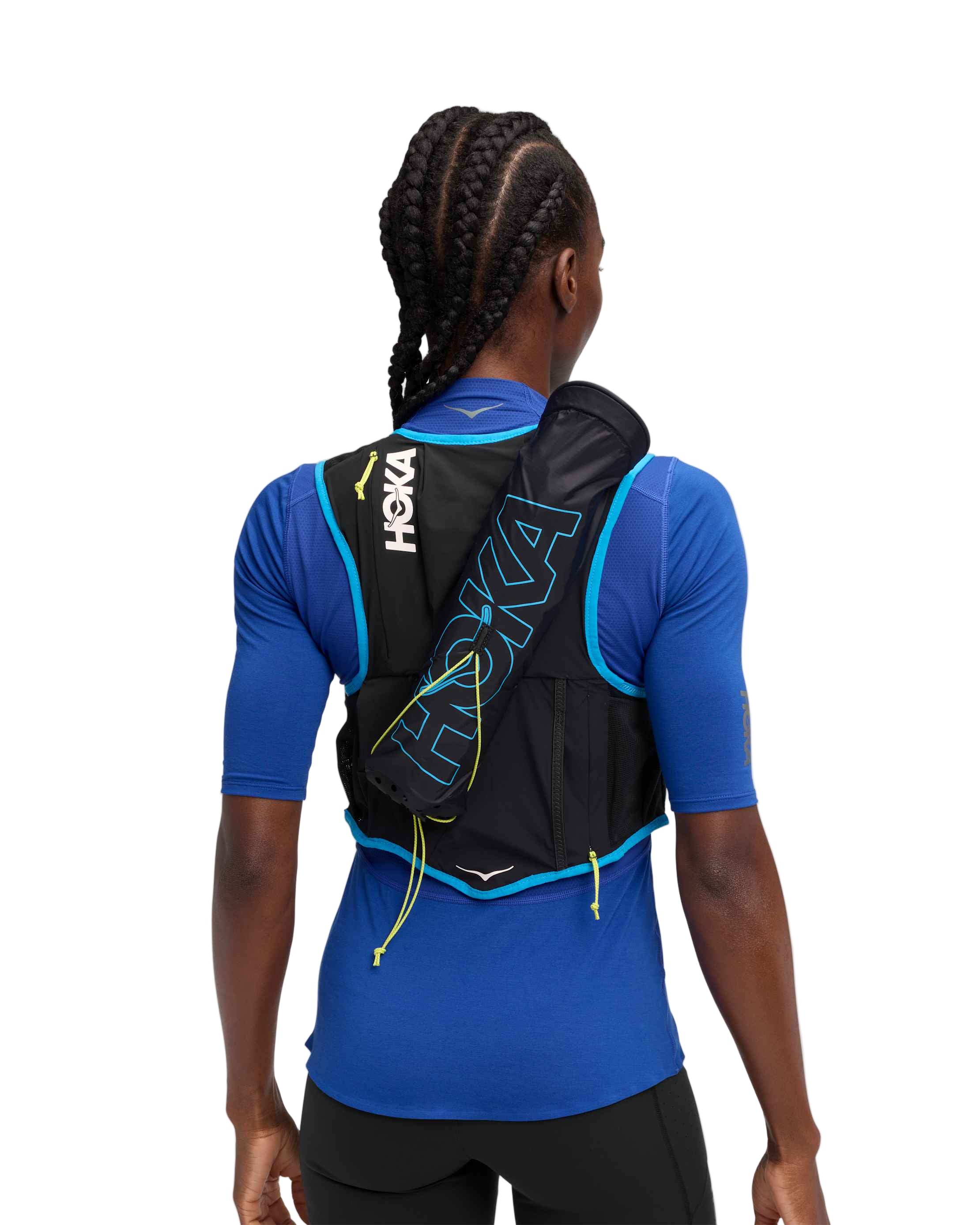 Designed with the HOKA UTMB® Mont-Blanc ultra trail race in mind and tested in pinnacle races around the world, the HOKA Trail Run Vest 10L deftly balances comfort, weight and storage for elite efforts. Tapping milligram-obsessed muses like HOKA ultra trail athletes, we created an intuitive 12-pocket storage solution that balances the load and moves seamlessly with the body. With an integrated pole quiver and two included 500mL HydraPak soft flasks, this vest may just be your crew’s new MVP.